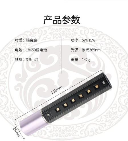 荧光检测筆(bǐ)是一种利用(yòng)紫外線(xiàn)照射荧光承印物(wù)来识别真伪的设备。在365NM和254NM紫外線(xiàn)灯的照射下,印刷荧光的特定區(qū)域将发出荧光反射,荧光反射的颜色和形状都可(kě)以作(zuò)為(wèi)防伪鉴别真伪的依据。荧光效果是由纸张和油墨中(zhōng)添加的荧光成分(fēn)共同作(zuò)用(yòng)的结果。